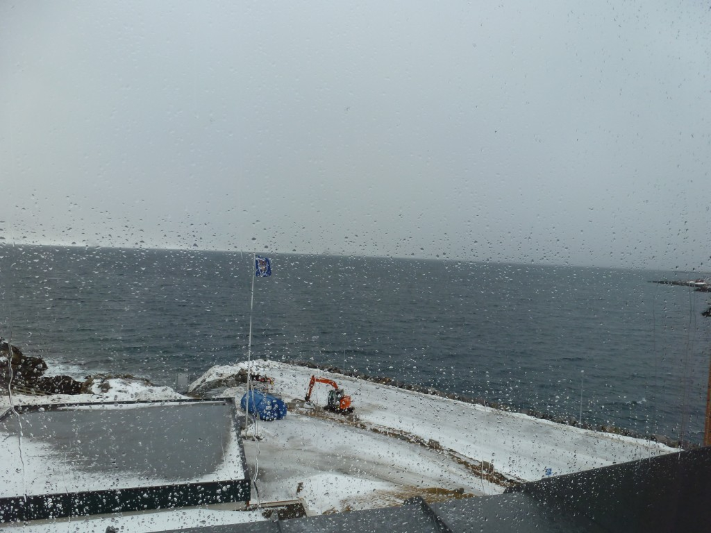 Heute Morgen ist zum ersten mal, seit meinem Aufenthalt hier, schlechtes Wetter und zwar Eisregen.